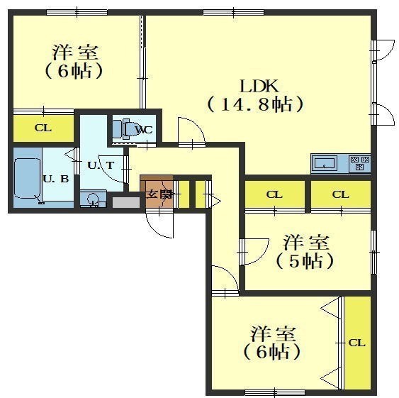 3LDK(78.08m²)└ LDK14.8帖 洋室6帖 洋室6帖 洋室5帖