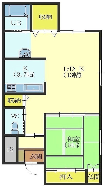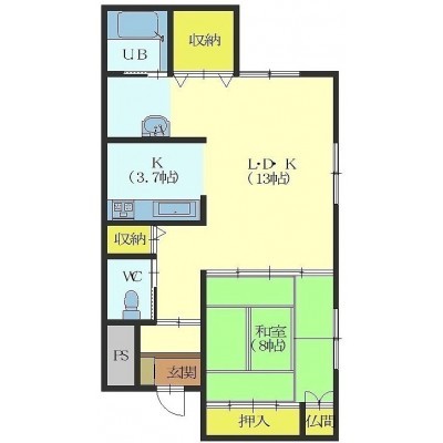 1LDK(66.66m²)└ LD13帖 和室8帖 K3.7帖