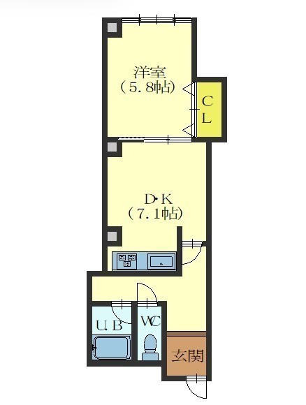 1DK└ DK7.1帖 洋室5.8帖