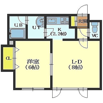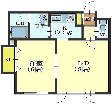 1LDK(38.69m²)└ LD8帖 洋室6帖 K2.25帖
