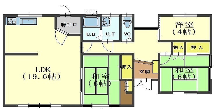 3LDK(58.12m²)└ LDK19.6帖 和室6帖 和室6帖 洋室4帖