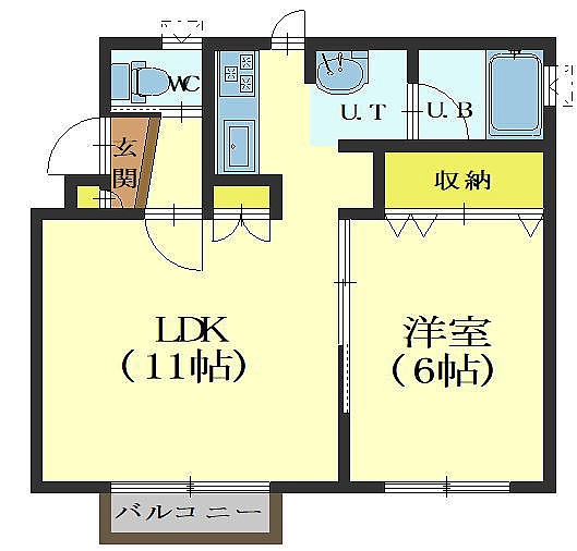 1LDK(39.6m²)└ LD9帖 洋室6帖 K2帖