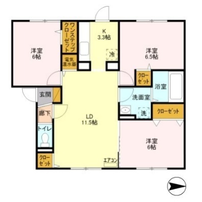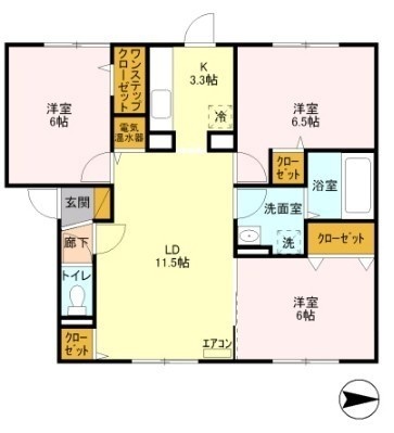 3LDK(72.75m²)└ LD11.5帖 洋室6.5帖 洋室6帖 洋室6帖 K3.3帖