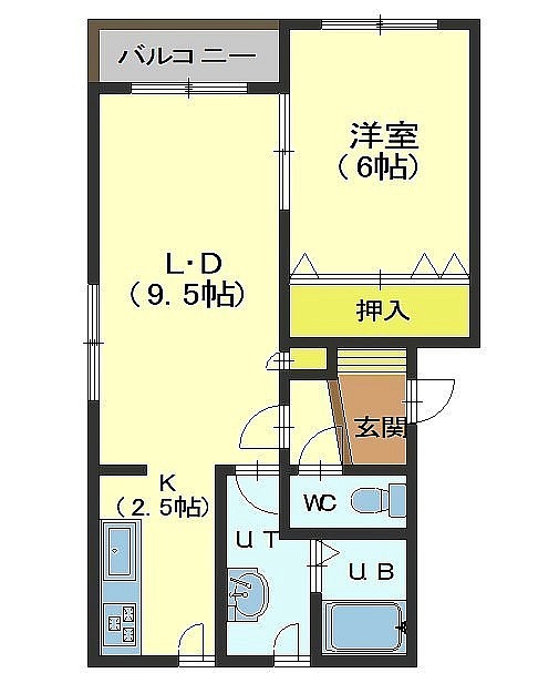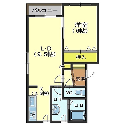 1LDK(42.14m²)└ LD9.5帖 K2.5帖 洋室6帖
