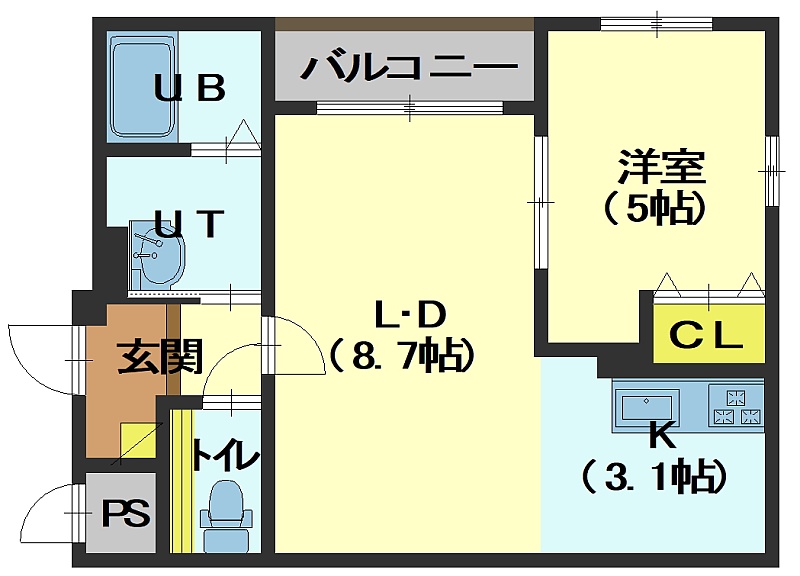 1LDK└ LD8.7帖 K3.1帖 洋室5帖