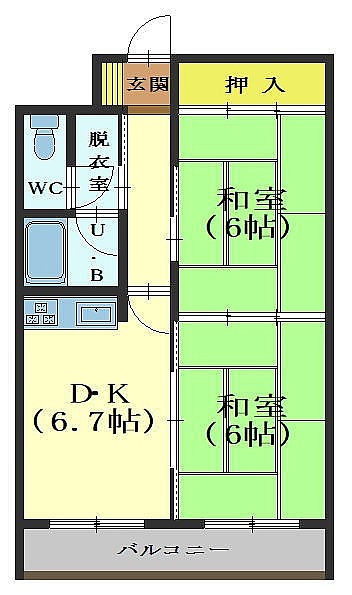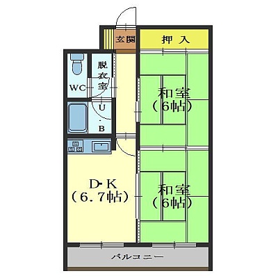 2DK(44.55m²)└ DK6.7帖 和室6帖 和室4.5帖