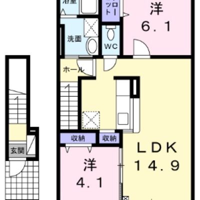 2LDK(58.87m²)└ LDK14.9帖 洋室6.1帖 洋室4.1帖