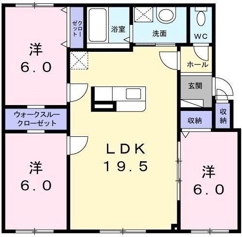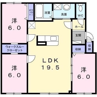 3LDK(79.5m²)└ LDK19.5帖 洋室6帖 洋室6帖 洋室6帖