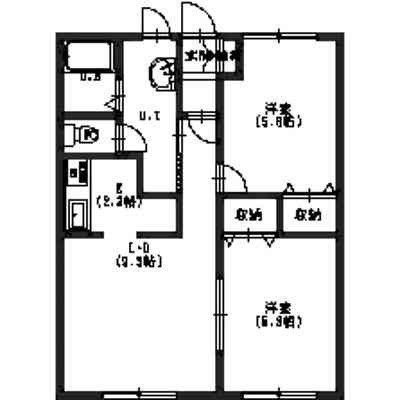 2LDK(49.09m²)└ LD9.3帖 洋室5.8帖 洋室5.6帖 K2帖