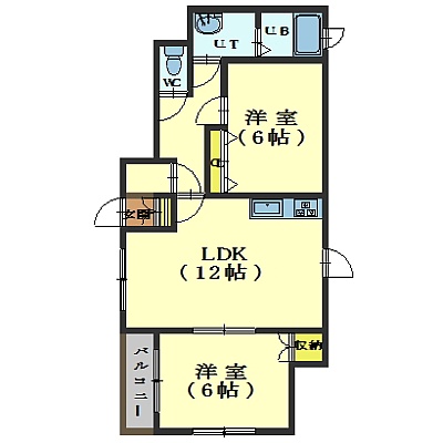 2LDK(53.79m²)└ LDK12帖 洋室6帖 洋室6帖