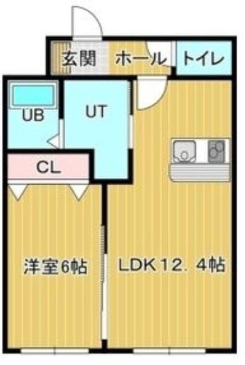 1LDK(43.5m²)└ LDK12.4帖 洋室6帖