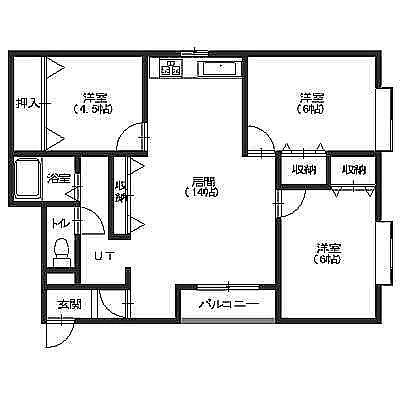 3LDK└ LDK14帖 洋室6帖 洋室6帖 洋室4.5帖