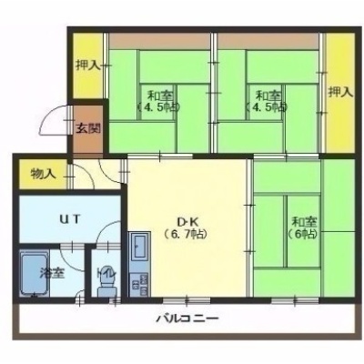 3DK(57.31m²)└ DK6.7帖 和室6帖 和室4.5帖 和室4.5帖
