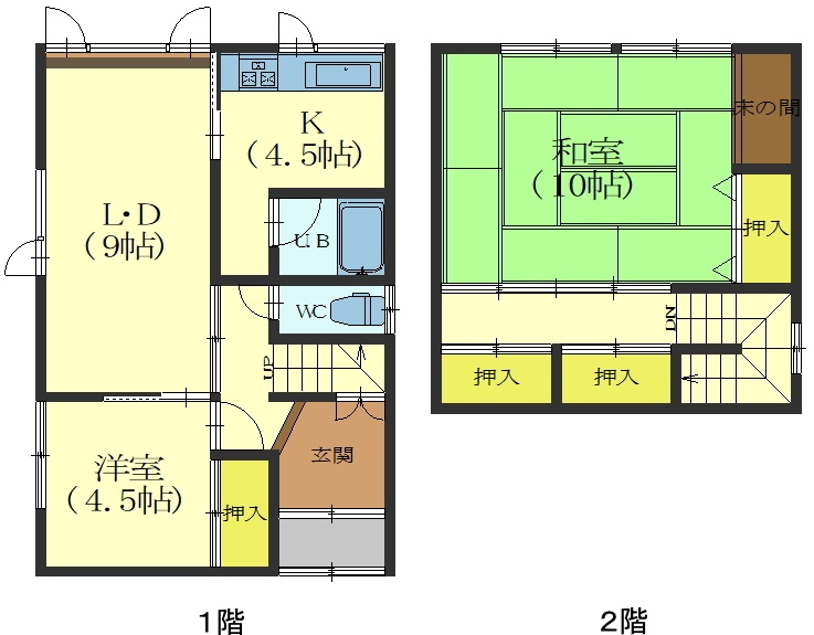 2LDK(74.52m²)└ 1階:LD9帖 K4.5帖 / 2階:和室10帖 / その他:洋室4.5帖
