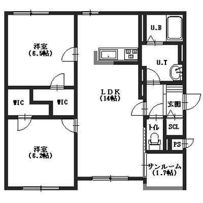 2LDK(62.08m²)└ LDK14帖 洋室6.5帖 洋室6.2帖