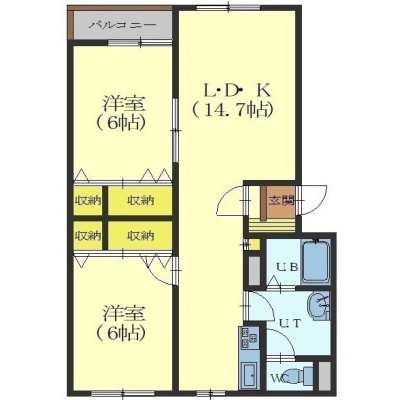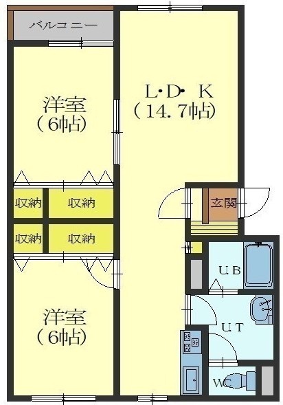 2LDK(60.38m²)└ LD9.76帖 K4.9帖 洋室6帖 洋室6帖