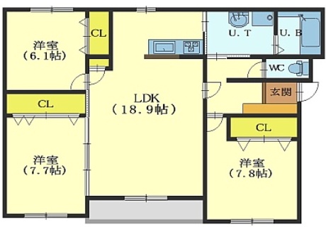 3LDK(90.57m²)└ LDK18.8帖 洋室8帖 洋室7帖 洋室6.1帖
