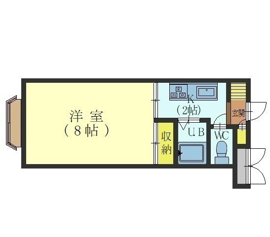 1K(23.68m²)└ 洋室9帖 K2帖