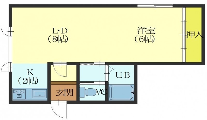 1LDK(36.36m²)└ LD8帖 K2帖 洋室6帖