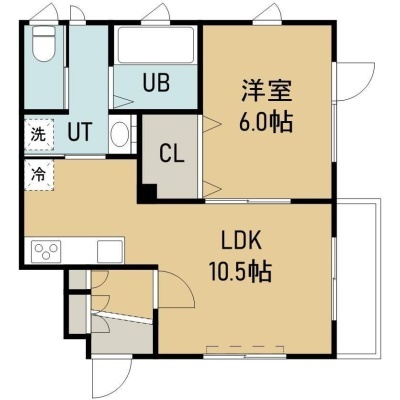 1LDK(43m²)└ 1階:LDK10.5帖 洋室6帖