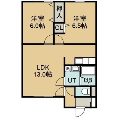 2LDK(54.45m²)└ 1階:LDK13帖 洋室6.5帖 洋室6帖