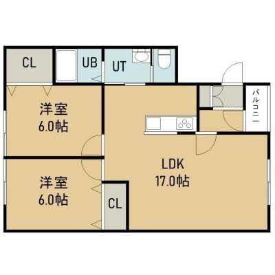 2LDK(61.88m²)└ 2階:LDK17帖 洋室6帖 洋室6帖