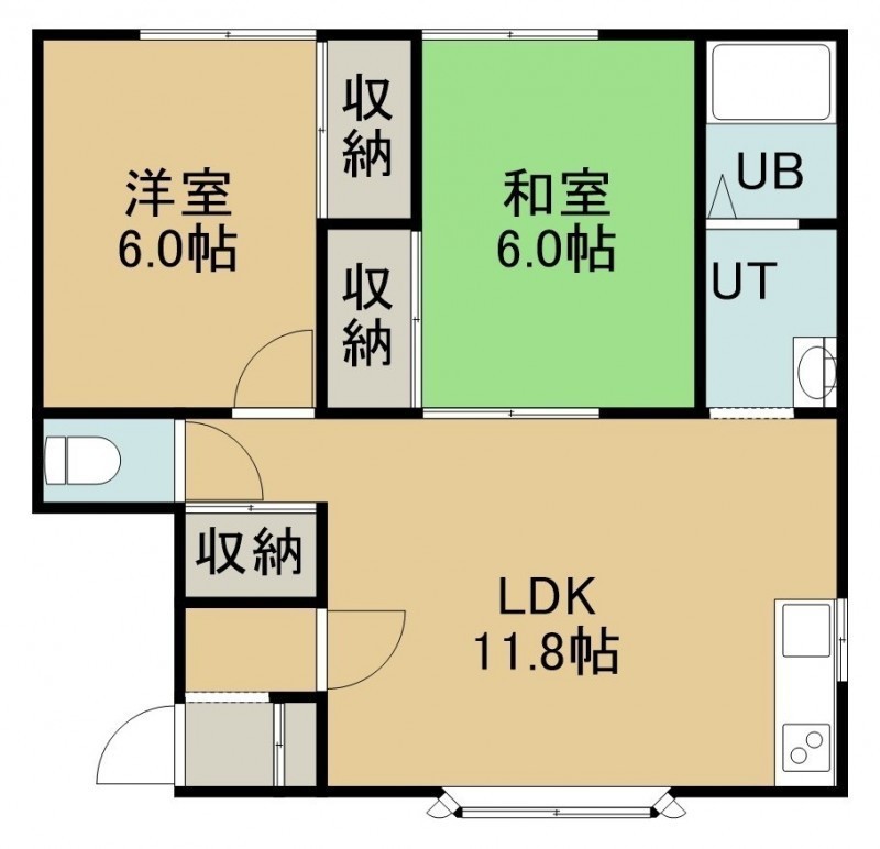 2LDK(53.05m²)└ 2階:LDK11.7帖 洋室6帖 和室6帖