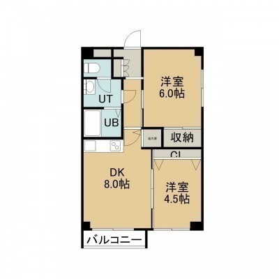 2DK(44.55m²)└ 2階:DK8帖 洋室6帖 洋室4.5帖