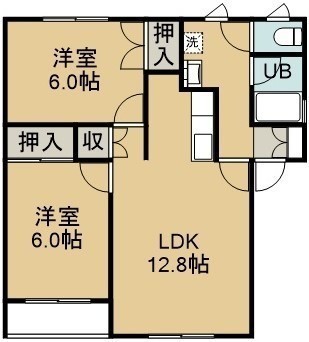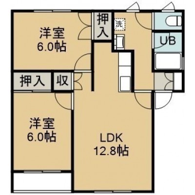 2LDK(53.46m²)└ 2階:LDK12.8帖 洋室6帖 洋室6帖