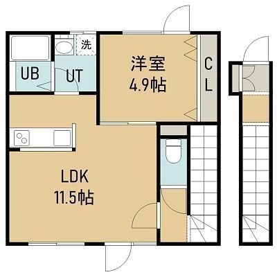 1LDK(43.05m²)└ 2階:LDK11.5帖 洋室4.9帖