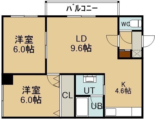 2LDK(56.4m²)└ 3階:LD9.6帖 K4.6帖 洋室6帖 洋室6帖