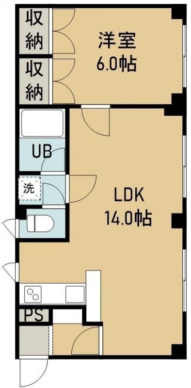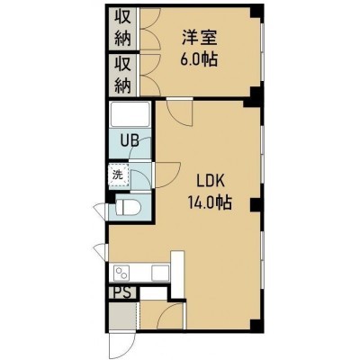 1LDK(46.5m²)└ 2階:LDK14帖 洋室6帖