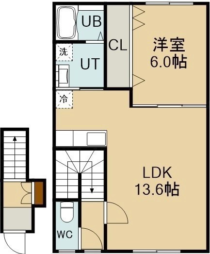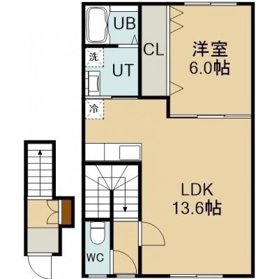 1LDK(49.27m²)└ 2階:LDK13.6帖 洋室6帖