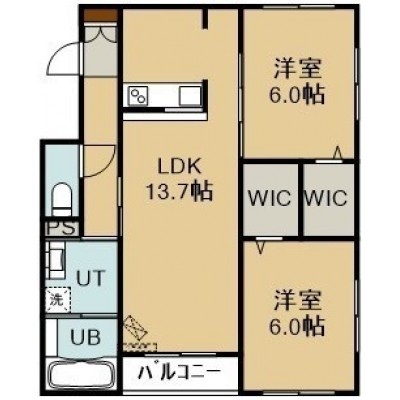 2LDK(61.2m²)└ 2階:LDK13.4帖 洋室6帖 洋室6帖