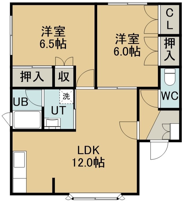 2LDK(55.78m²)└ 2階:LDK12帖 洋室6.5帖 洋室6帖