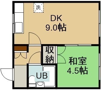 1DK(29.7m²)└ 2階:DK9帖 和室4.5帖