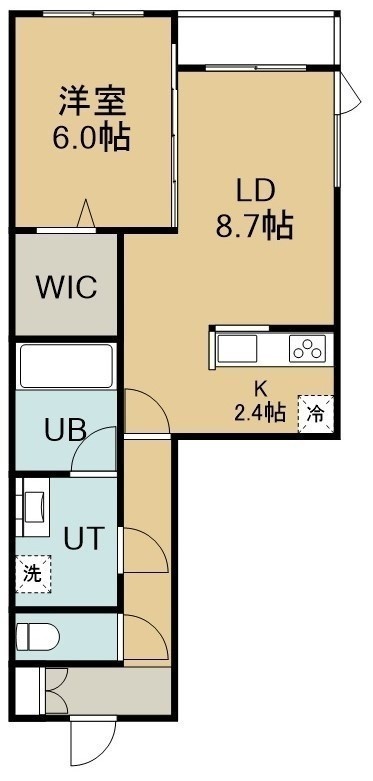 1LDK(42.41m²)└ 4階:LD8.7帖 K2.4帖 洋室6帖