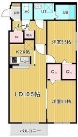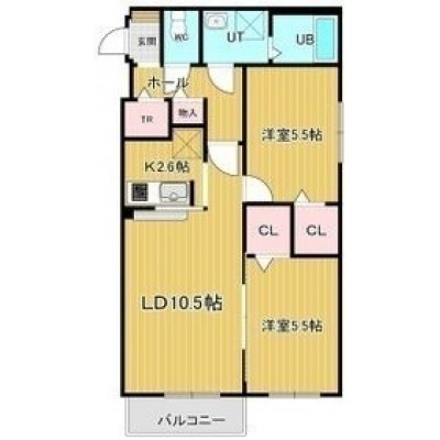 2LDK(56.3m²)└ 4階:LD10.5帖 K2.6帖 洋室5.5帖 洋室5.5帖