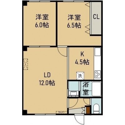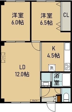 2LDK(57m²)└ 3階:LD12帖 洋室6.5帖 洋室6帖 K4.5帖