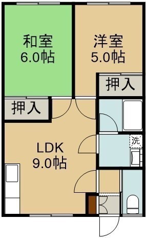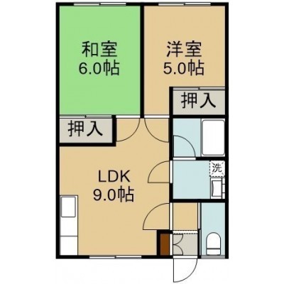 2DK(44.62m²)└ 2階:DK9帖 和室6帖 洋室5帖