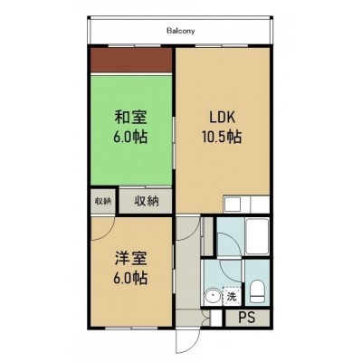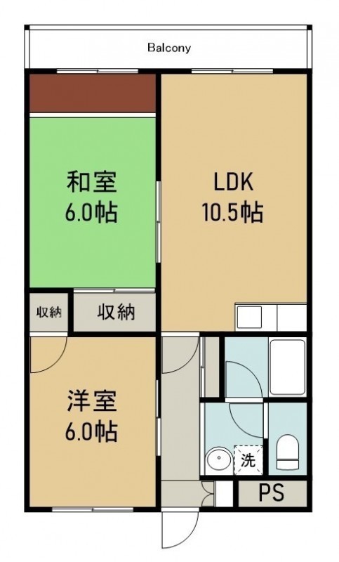 2LDK(54m²)└ 5階:LDK10.5帖 洋室6帖 和室6帖