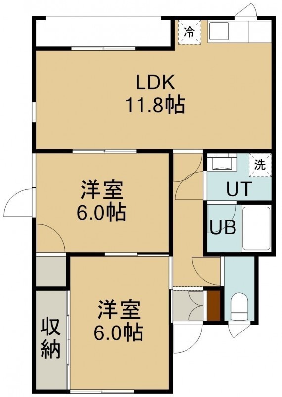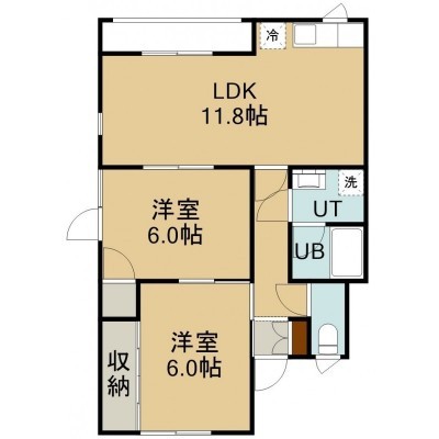 2LDK(57.27m²)└ 1階:LDK11.8帖 洋室6帖 洋室6帖