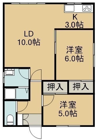 2LDK(58m²)└ 2階:LD10帖 K3帖 洋室6帖 洋室5帖