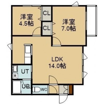 2LDK(52.99m²)└ 1階:LDK14帖 洋室7帖 洋室4.5帖