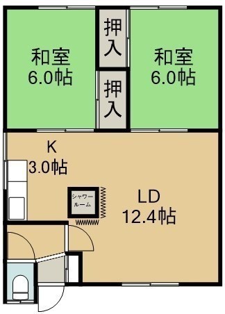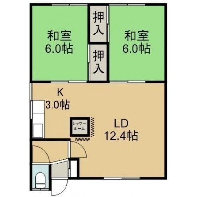 2LDK(52.39m²)└ 2階:LD12.4帖 K3帖 和室6帖 和室6帖