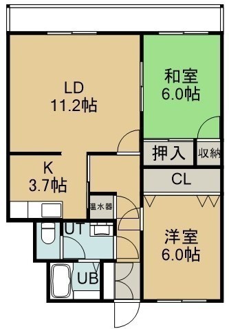 2LDK(59.71m²)└ 4階:LD11.2帖 K3.7帖 洋室6帖 和室6帖