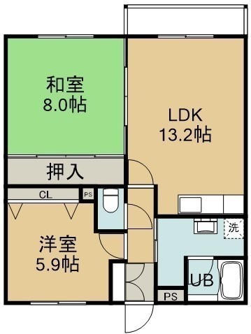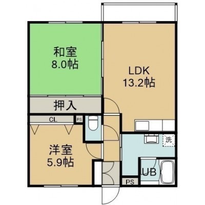 2LDK(67m²)└ 3階:LDK13.2帖 和室8帖 洋室5.9帖