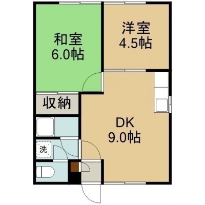 2DK(39.74m²)└ 1階:DK9帖 和室6帖 洋室4.5帖