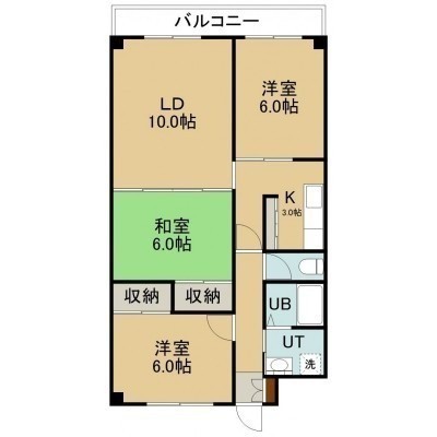 3LDK(66.11m²)└ 4階:LD10帖 K3帖 洋室6帖 洋室6帖 和室6帖