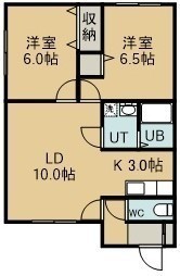 2LDK(54.45m²)└ 2階:LD10帖 K3帖 洋室6.5帖 洋室6帖